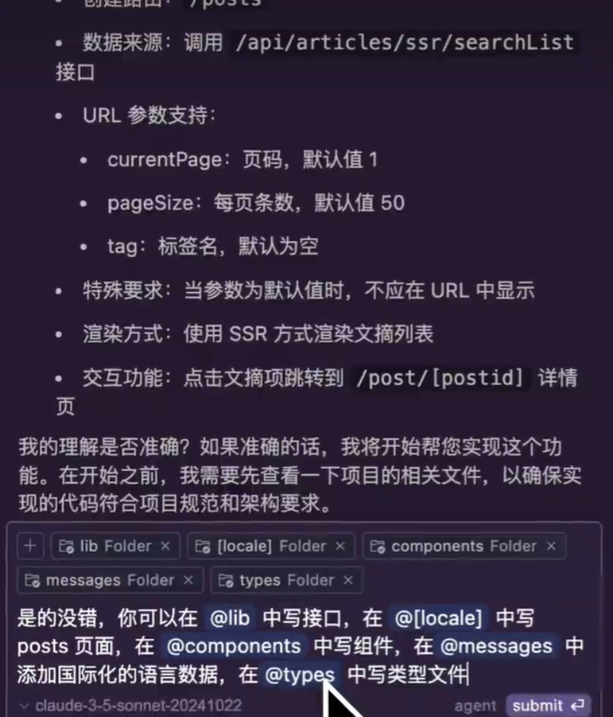 - 在给AI的需求的时候,我们要先让他复述一遍需求,然后再答复操作,这样可以做二次核对