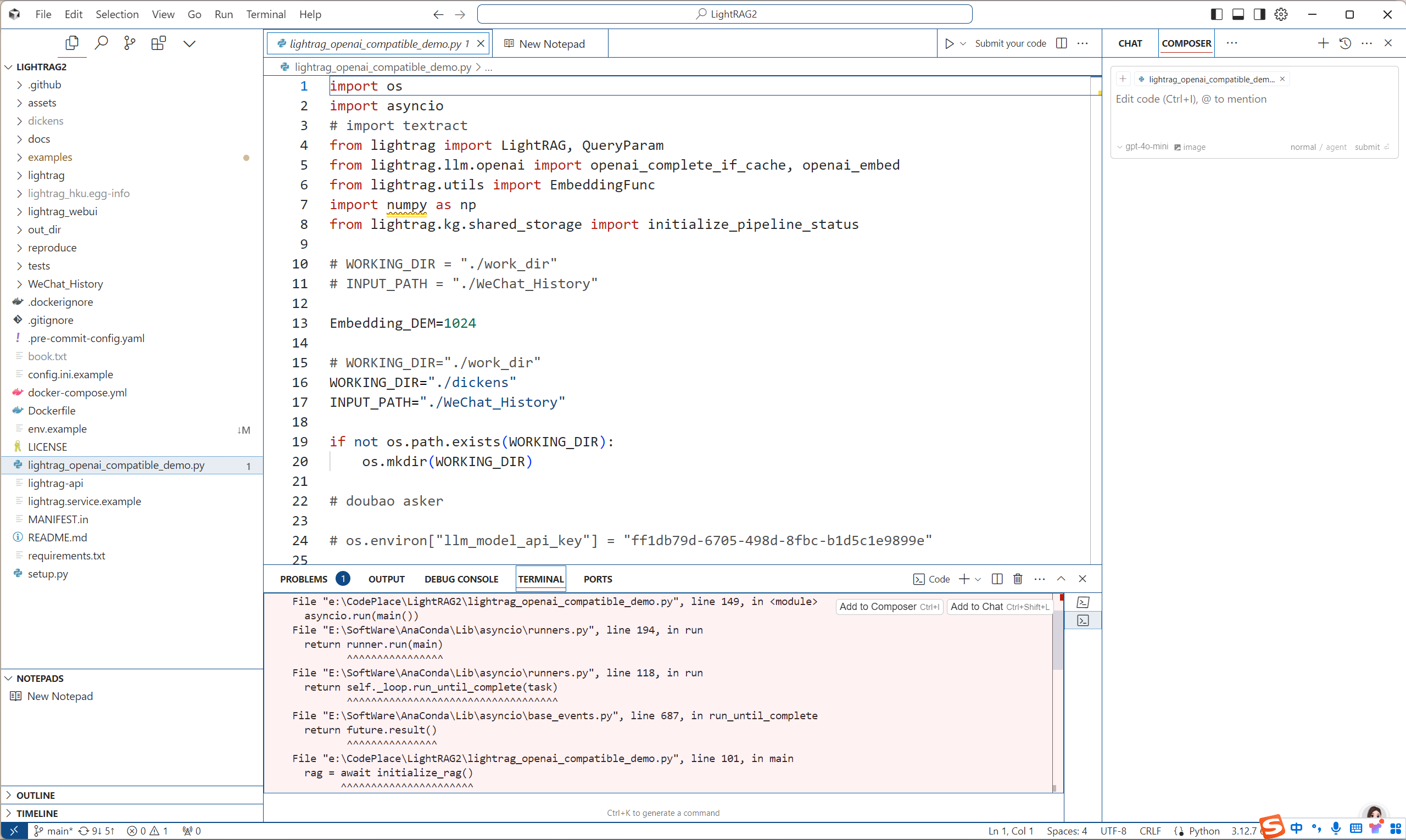 比如这样一个Python的UI界面,还有相关的API调用,我全部都是拿Cursor实现的,我基本没有写代码