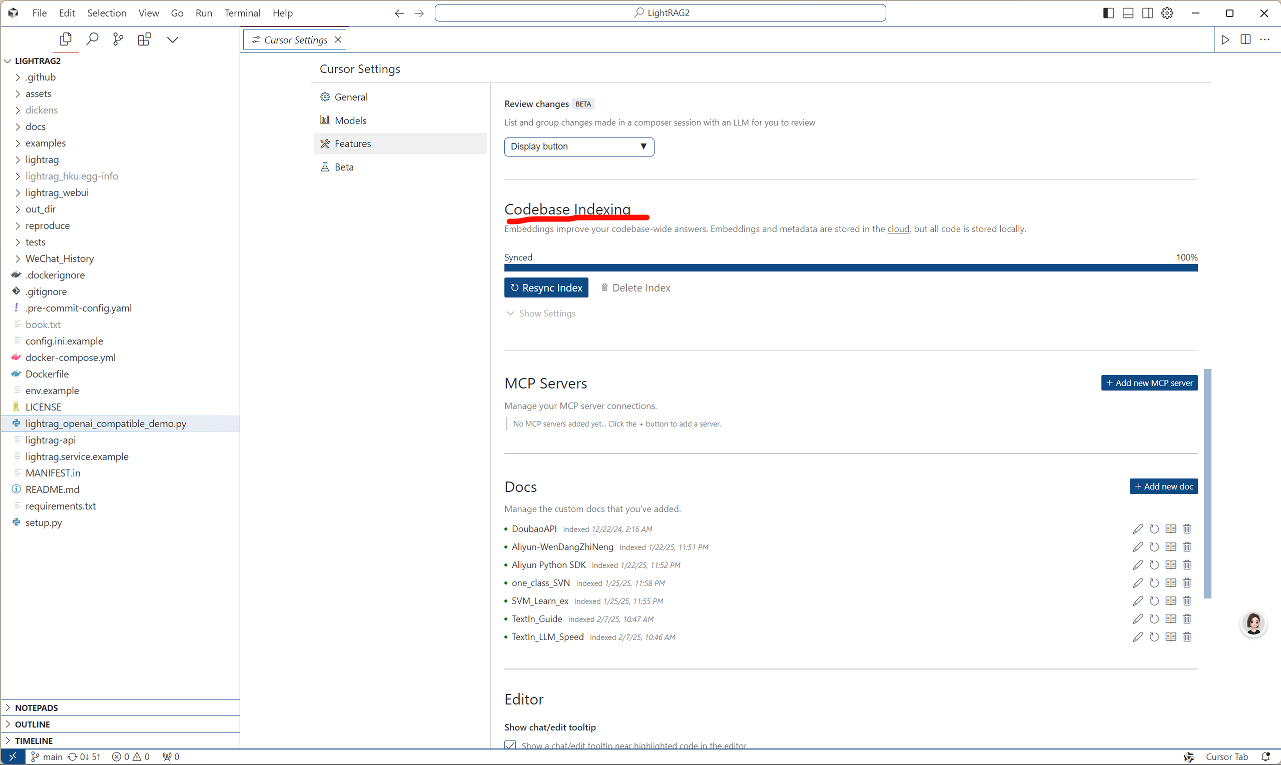 Codebase indexing下的Resvnc Index重新索引 -